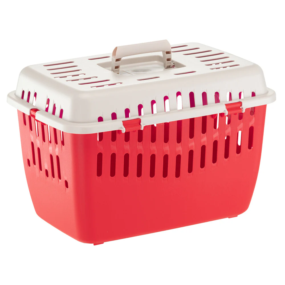 Robusto pero ligero al mismo tiempo, el transportín para mascotas Binny puede ser útil en muchas ocasiones. Las grandes rejillas de ventilación del techo y de las paredes laterales han sido diseñadas para una ventilación óptima, asegurando un viaje cómodo para tu mascota. La parte superior está equipada con un cierre de seguridad para evitar aperturas accidentales durante el viaje. Un cómodo mango facilita el movimiento.