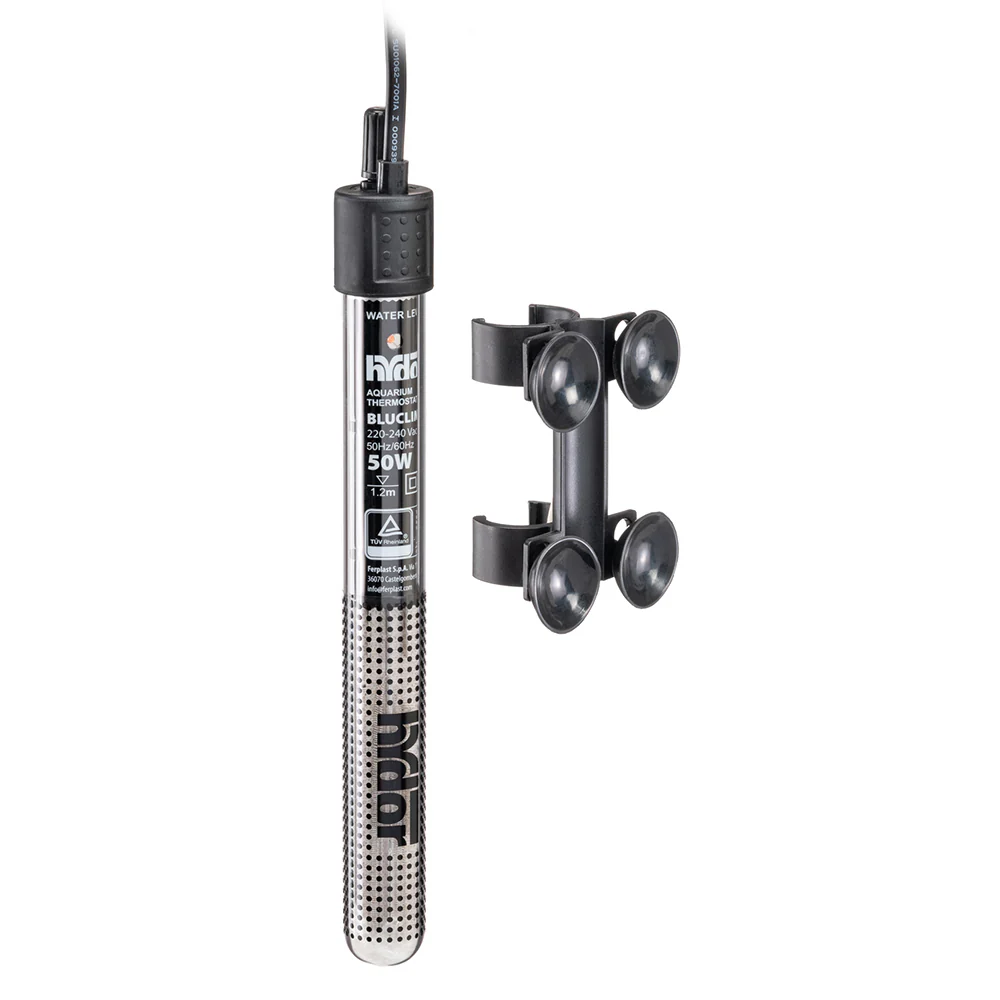 Totalmente sumergible, Bluclima es un calentador interno para acuarios marinos o de agua dulce y también es adecuado para tanques de tortuga. Preciso y confiable, se garantiza la temperatura dentro del tanque y es fácil posicionarlo gracias a los clips con ventosas. El calentador Bluclima tiene un tubo de vidrio de 2 mm de espesor especialmente diseñado para asegurar una alta resistencia térmica. Con el fin de regular el termostato a la temperatura deseada, sólo tiene que girar la perilla de control hasta que el puntero sito en la escala graduada se corresponda con el valor deseado, sin tener que quitar el calentador del filtro. Además, un indicador de luz del calentador permanecerá encendido durante el período de funcionamiento. Disponible en seis diferentes potencias: 50W, 75W, 100W, 150W, 200W y 300W.