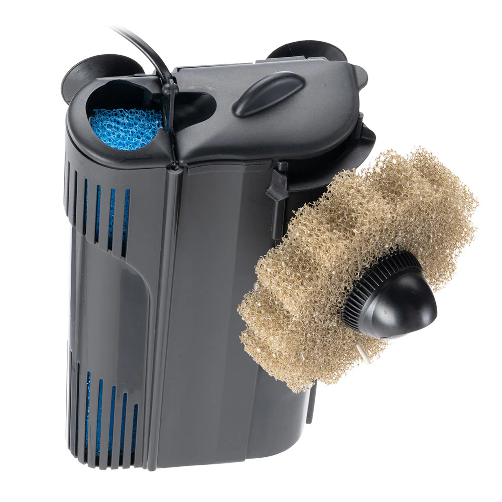 El filtro es fácil de instalar y limpiar, permite un posicionamiento flexible dentro del tanque (lateral o posterior) gracias a las ventosas con las que está equipado.