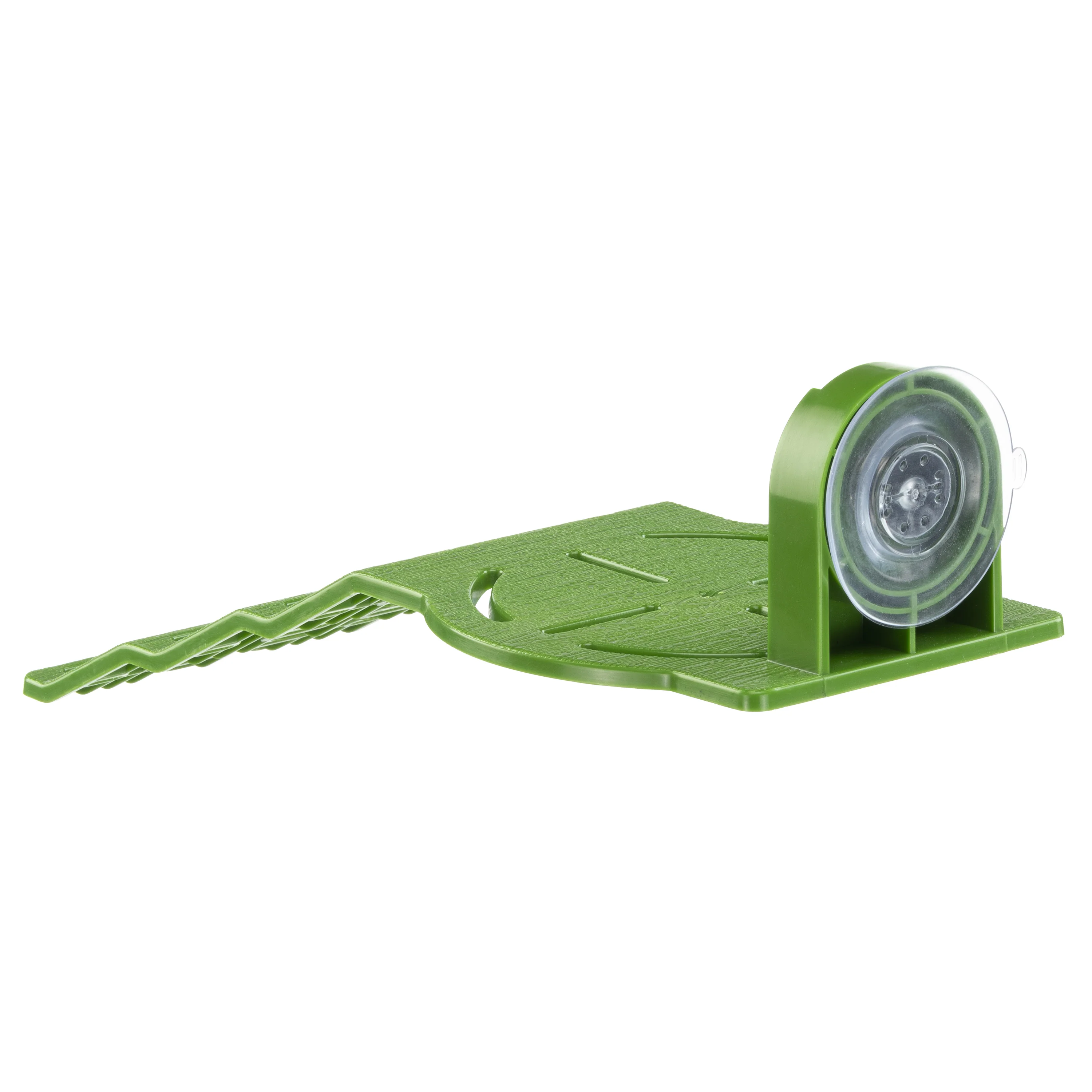 Fácil de instalar gracias a su ventosa, esta plataforma para tortugas puede fijarse en cualquier lugar del cristal de la tortuguera. La instalación es sencilla e intuitiva: basta con fijar la ventosa al cristal, bloquear la rampa con el asa y ya está lista para usar.